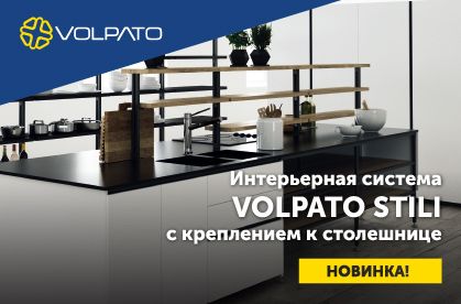 Теперь гардеробную систему хранения можно использовать на кухне. Стандартные кухонные навесные шкафы легко заменить стильными открытыми полками. Крепления Volpato Stili доступны к заказу на филиалах и на сайте.