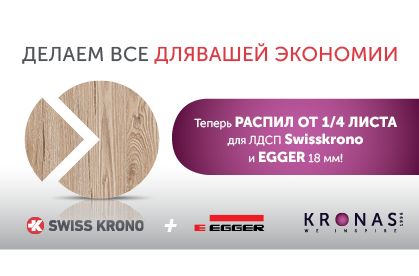 Теперь вы можете заказать распил ЛДСП 18 мм от таких известных марок, как Swisskrono и Egger, от ¼ листа.