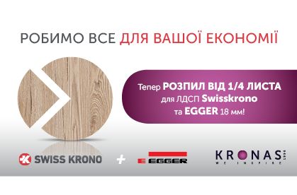 Тепер ви можете замовити розпил ЛДСП 18 мм від таких відомих марок, як Swisskrono та Egger, від ¼ листа.